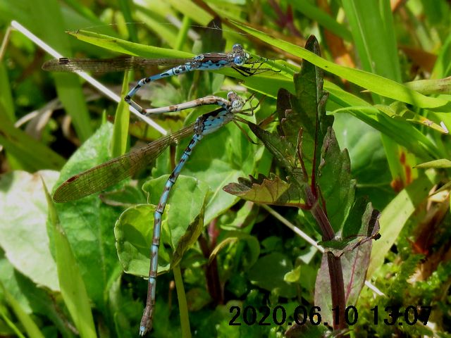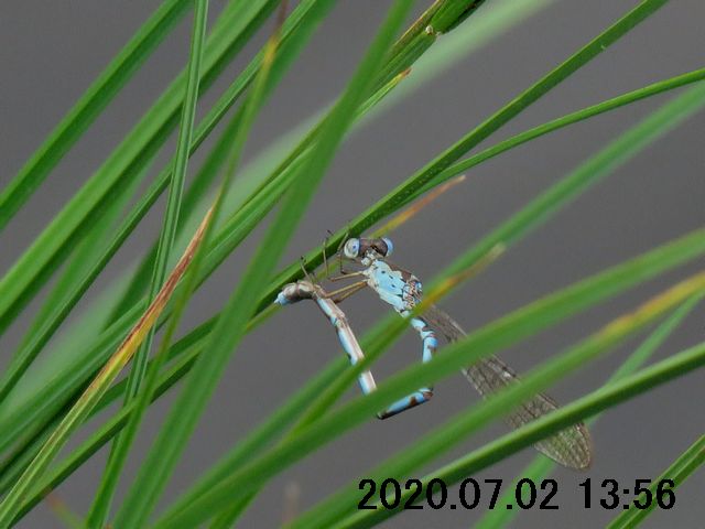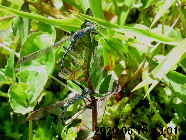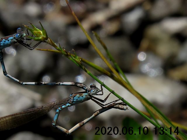 産卵を確認した6月10日は風が強く、全ての連結が産卵基質の植物(草の茎)から産卵途中で引き剥がされるように飛ばされていた。