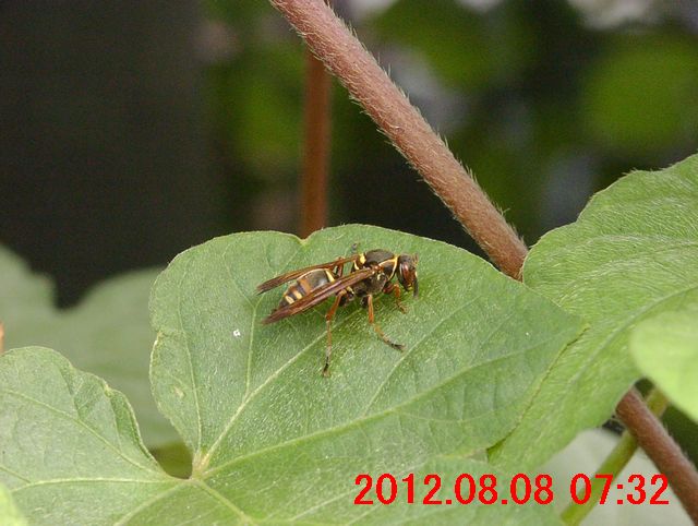ノアサガオの葉の上に蜂がいた(画像1)。