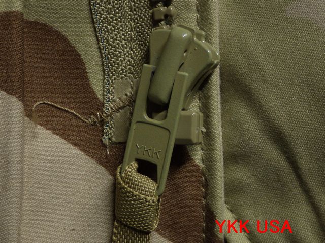 ●ファスナは、YKK製品で、ビスロン(VISLON)と呼ぶ樹脂ファスナが使用してあった。従前のM-65は真鍮、古いM-65はアルミニウム合金のファスナだった。