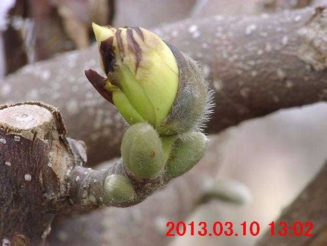 3月6日に比べると、明らかな変化があった。それは、花芽の芽鱗が割れ始めていたことである(画像 1・画像 2)。