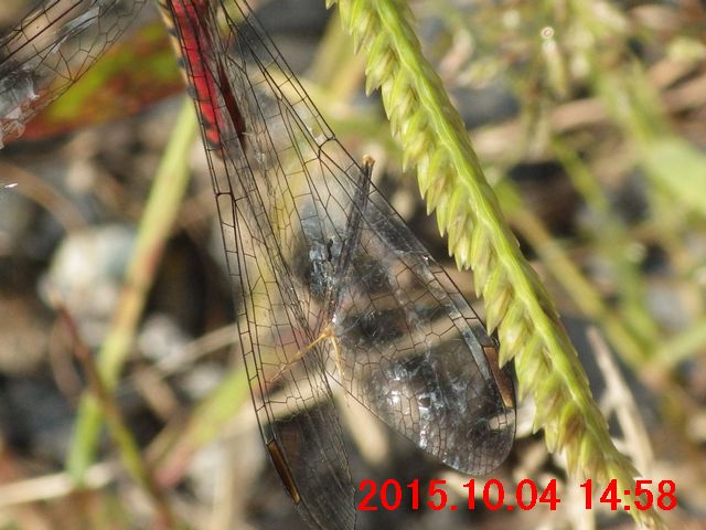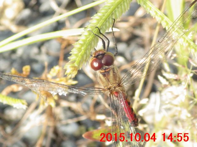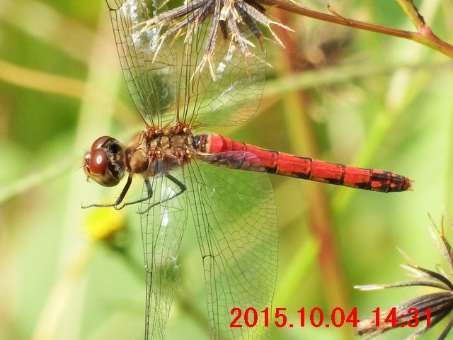 2015年10月4日、コセンダングサ(小栴檀草)の餌食になった赤とんぼを見た。
