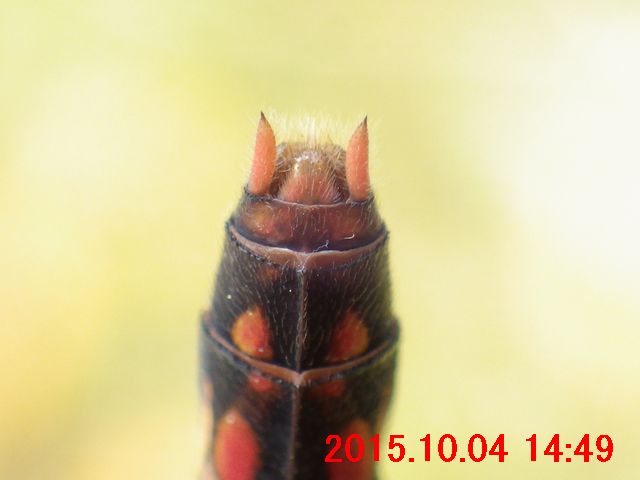 額隆部には単眼が3個、触角が1対、写っているはずだが、この画像では見づらい。