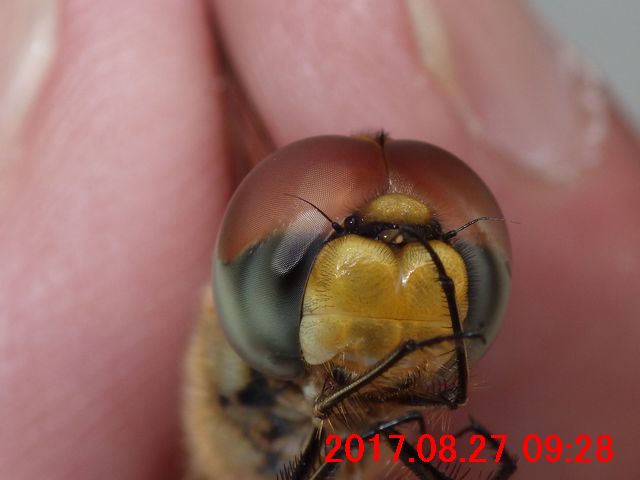 おとなしくしているナツアカネの雌の簡易撮影が済んだので、逃がしてあげることにした。