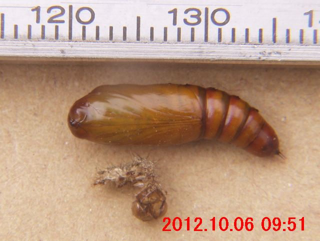 この幼虫は、10月8日に蛹になっていた。