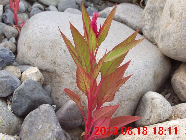 ぽつん、ぽつんと2株だけなので、上流から種子が流れ着いたものと推測した。そして、「流れ着きしもの」として、継続観察の対象とすることにした。